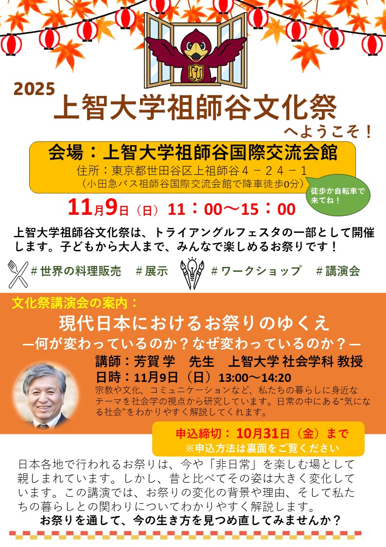 上智大学祖師谷文化祭講演会のご案内