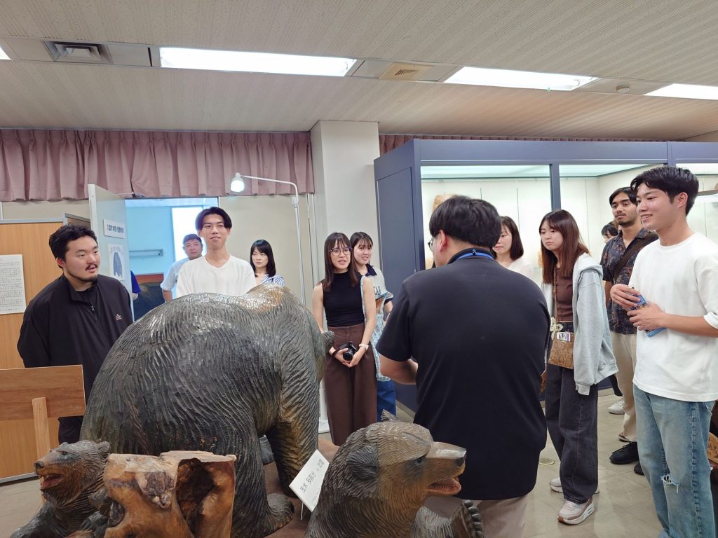 木彫り熊の歴史も、尾張徳川家代19代当主の徳川義親に関係してきます。徳川義親がスイスのベルンに旅行した際、旅先で農民たちが作った木彫り熊に出会いました。そして義親が八雲町に木彫り熊を持ち帰り、農村を豊かにすることを目指して、町の農民たちにその製作を勧めたことで、現在の八雲町における木彫り熊文化に繋がっていったそうです! 資料館では、職人の方々によって作られたたくさんの木彫り熊を見ることができました。長い歴史を持つ工芸品としての木彫り熊一つ一つに込められた、職人の方々の背景とこだわりを感じることができました。