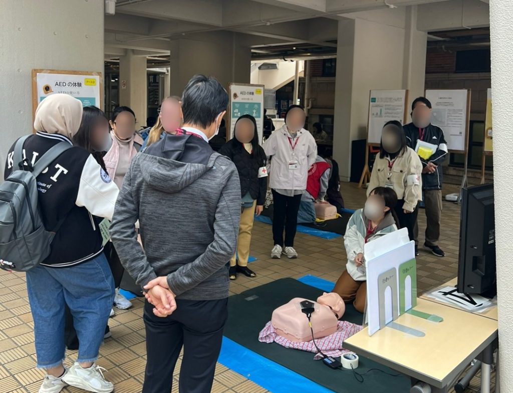 3日目には、上智大学ウェルネスセンターの方々にご協力いただき、AEDの使い方や心肺蘇生の重要性を体験し、学んでいただきました。自分の力で何をすることができるか、どのように使えばいいのかを知っていただくことで、緊急時にもためらうことなく行動できるようになっていただけるといいです。