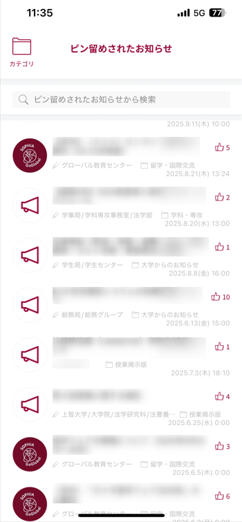 (もっちー記者)お知らせのピン留め機能をお勧めしたいです! 自分が気になるイベントのお知らせや大切なお知らせなどをピン留めすることで、他のお知らせに埋もれず、後から探しやすくなります。特に新入生は大切なお知らせが多いと思うので、ぜひ使ってみてください!