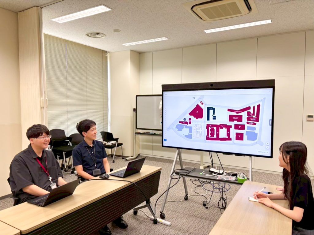 (情報システム室)まず、キャンパスマップの機能をおすすめしたいです。キャンパスマップでは、建物の位置関係だけでなく、各号館、各階の教室の位置まで見ることができます。(こだわってこの機能を作り上げてくださったそうです……。私自身も入学したてのころ、教室の場所も地図上の位置もよくわからず困っていたときにすごくお世話になりました)。