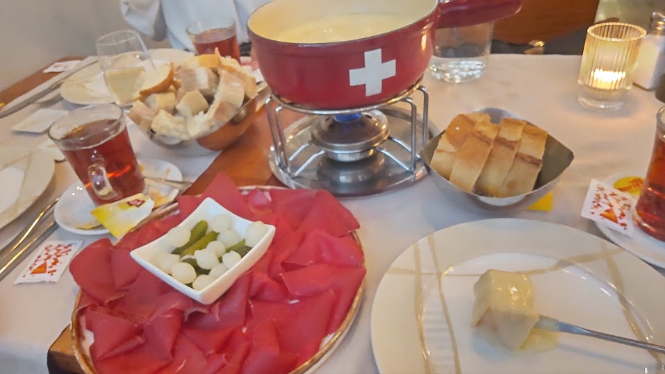 17時頃には研修が終わるので、夕食はスーパーでお惣菜を買ったり、時にはレストランで食べたりと各自、自由にスイスの生活を満喫していました。ヨーロッパあるあるかもしれませんが、スイスのお店や観光名所が閉まるのは19時と早いので、お土産も急いで買いに行くことになります。スイスは日の入り時刻が遅いので、20時になっても町は明るく、景色を長く楽しむことができました。