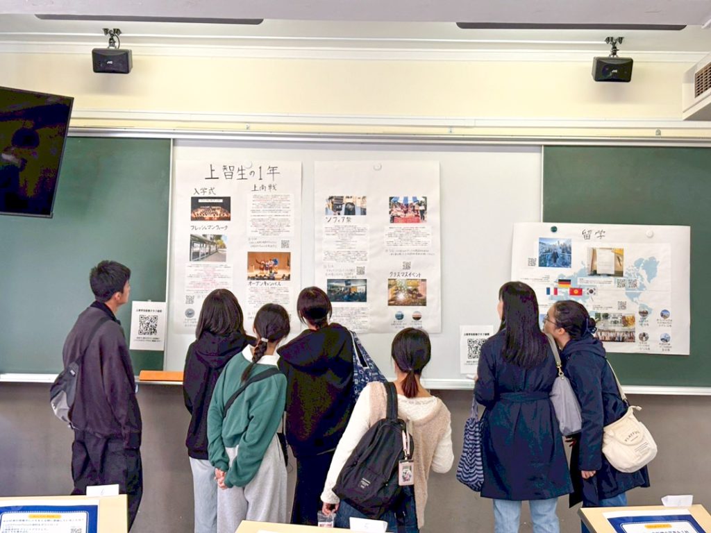 ノア記者とほのか記者が制作した展示の数々は「上智生の一年」、「上智の歴史」といったジャンルに分けられ、受験生の方やその親御さんを中心に、多くのお客様にご覧いただきました。昔との違いについてお話しくださる卒業生の方も!