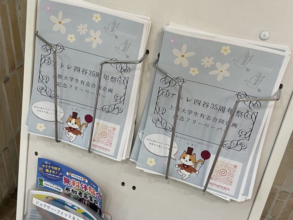 アトレ四谷35周年イベントの開催期間中には、制作したフリーペーパーを店頭のチラシ置き場に置いていただきました。