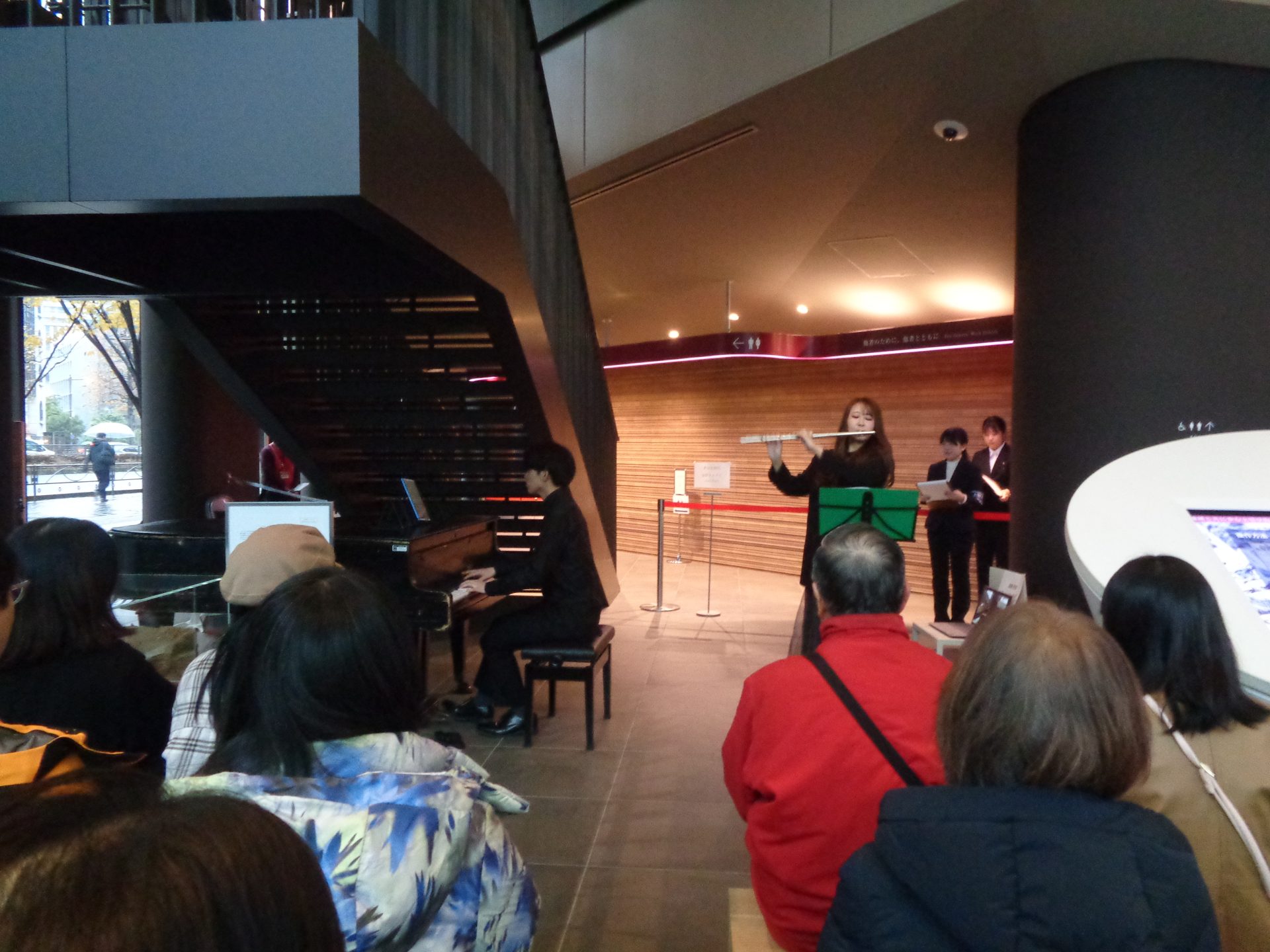 また当日は、ピアノソロ2曲に加えて、ピアノとフルートのアンサンブル1曲の計3曲が演奏されました(実はアンコールもありました……!)。ピアノソロ2曲はクラシックから、アンサンブル1曲はディズニー音楽から選曲し、多様な音楽が奏でられました。コンサート本編の後には、アンコールとして≪もろびとこぞりて≫が演奏され、クリスマスイブらしい曲目で終演しました。