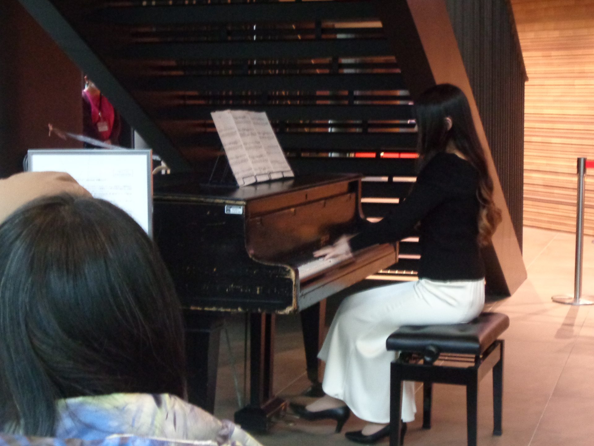 開演時間30分前である14時30分に開場する予定でしたが、開場時間の前から既に何人かお客様が見えていました。当日は少し雨が降っていましたが、15時が近づくにつれてだんだんとお客様がご来場になりました。コンサートでは、ピアノ付近の1階席に加えて、2階席、また各階立ち見席も用意していました。コンサート開始時刻には既に座席は満席となり、立ち見のお客様もいらっしゃいました。最終的には約70人のお客様に見守られながら、コンサートは始まりました。このコンサートは予約不要・入場無料という形式を取っていたため、コンサート当日までに行った宣伝の効果を感じた瞬間でした。