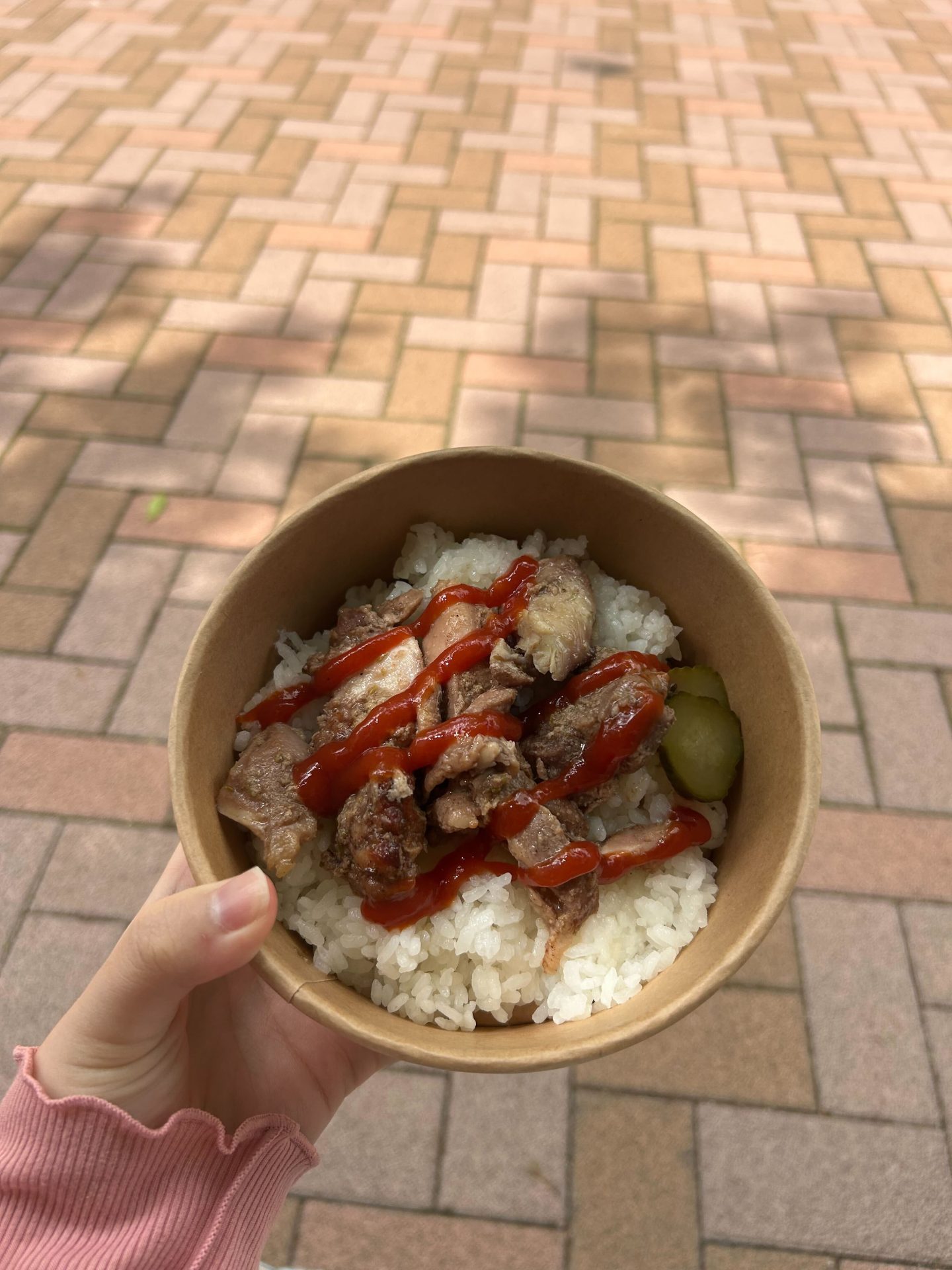 個人的にとてもおすすめです! 年度や日によってメニューが変わり、毎日さまざまなメニューが楽しめます。値段は学食に比べたら高いので、たまにの贅沢で食べてみるのはいかがでしょうか? 2限の時間内~14時頃まで開いているので、時間のある時に購入することができます。お昼休みにももちろん買えますが、長蛇の列ができていることがほとんどなので、2限や3限が空いている場合には避けるのが無難かなと思います。キッチンカーの魅力としては、何といっても出来たてが食べられるところです! 温かいごはんを食べるとほっとした気持ちになるので、私にとってはキッチンカーの存在がキャンパスライフにおいて欠かせないです(笑)。